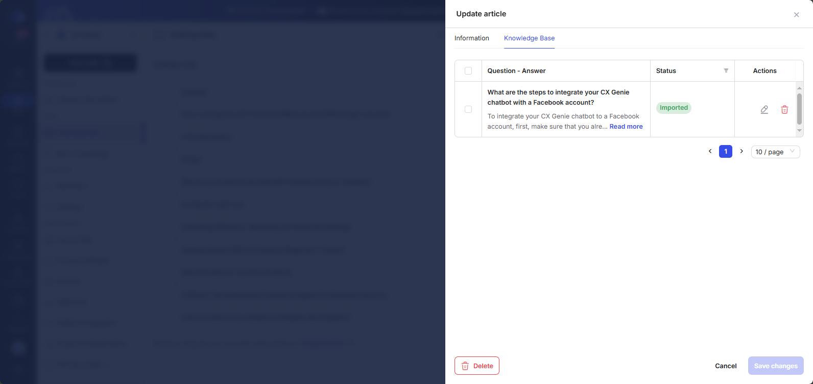 All imported Articles are stored in the **Knowledge Base tab**.\