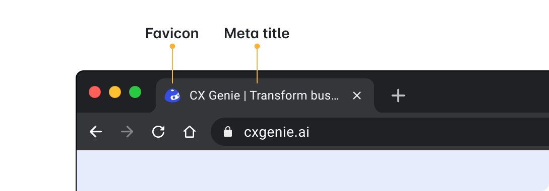 A favicon is your website logo that appears next to the meta title on your browser tab.